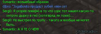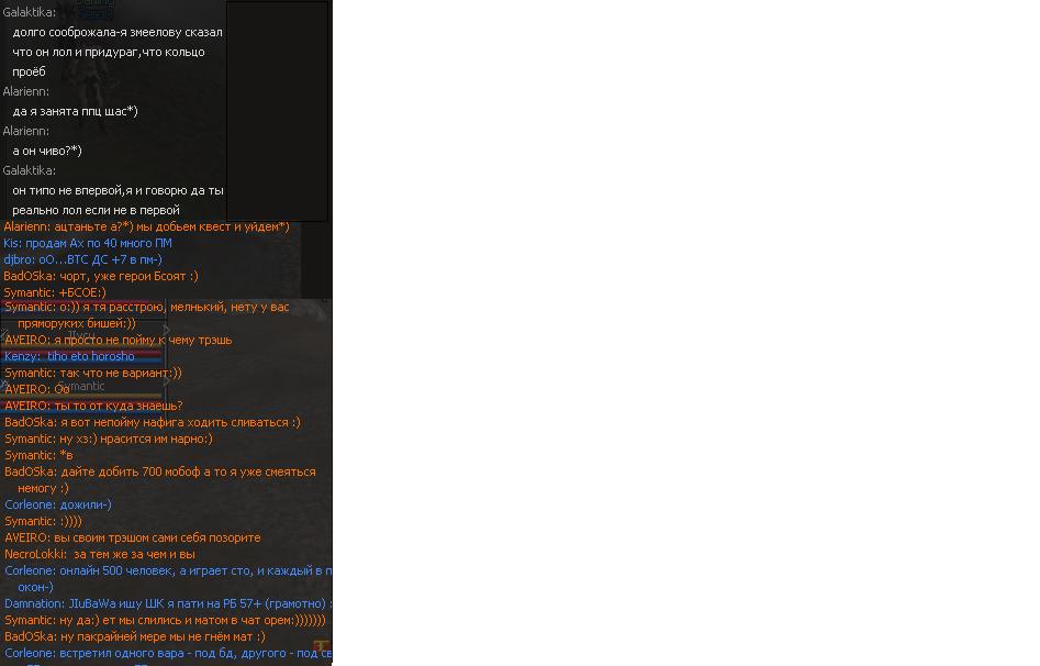| и еще немного инфы по этому поводу: ник (19:35:18 4/05/2008) лордя мб жжет?) насчет невидимого дамага. из серии : " я трупик мужа поближе подвинула - ему так хотелось поглядеть как вы фармите". ппц)) это с нами так было. мб на опеновском форуме видела ник (19:35:29 4/05/2008) она как раз из пае чтоле и так...пара скринчегов..просто улыбает меня*) З.Ы. некое светлоухое чудо из пае сегдня понаблюдало за замесами, вышло из склана и написало мне: И...АШЬТЕ ИХ! алли дэбилов... (С)