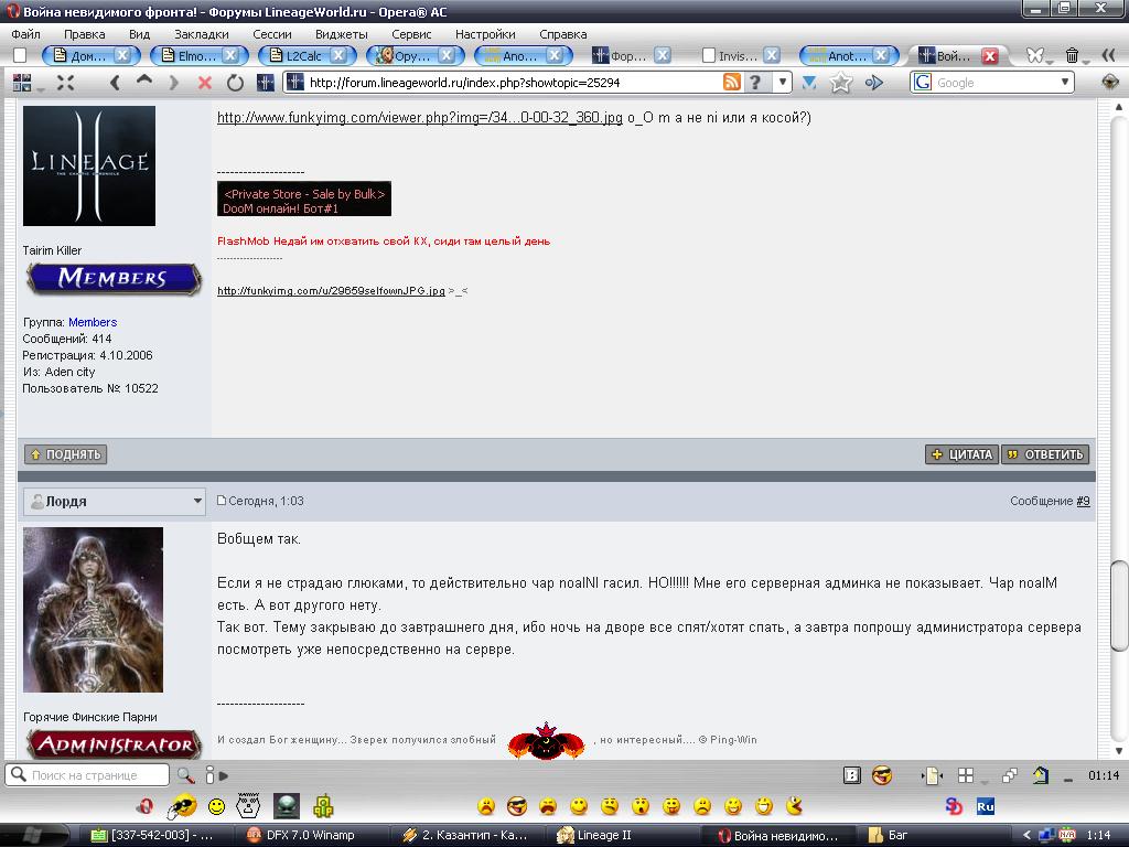 | после 15ого приедем в москоу: я,маф и мб славег...я ваще та к смиту^^ ...как все точно будем знать, создам темку http://forum.lineageworld.ru/index.php?showtopic=25294 З.Ы. я НИКАК не могу зайти на форум опена, именно в эту тему... так что смотрю по скринам что там было....
